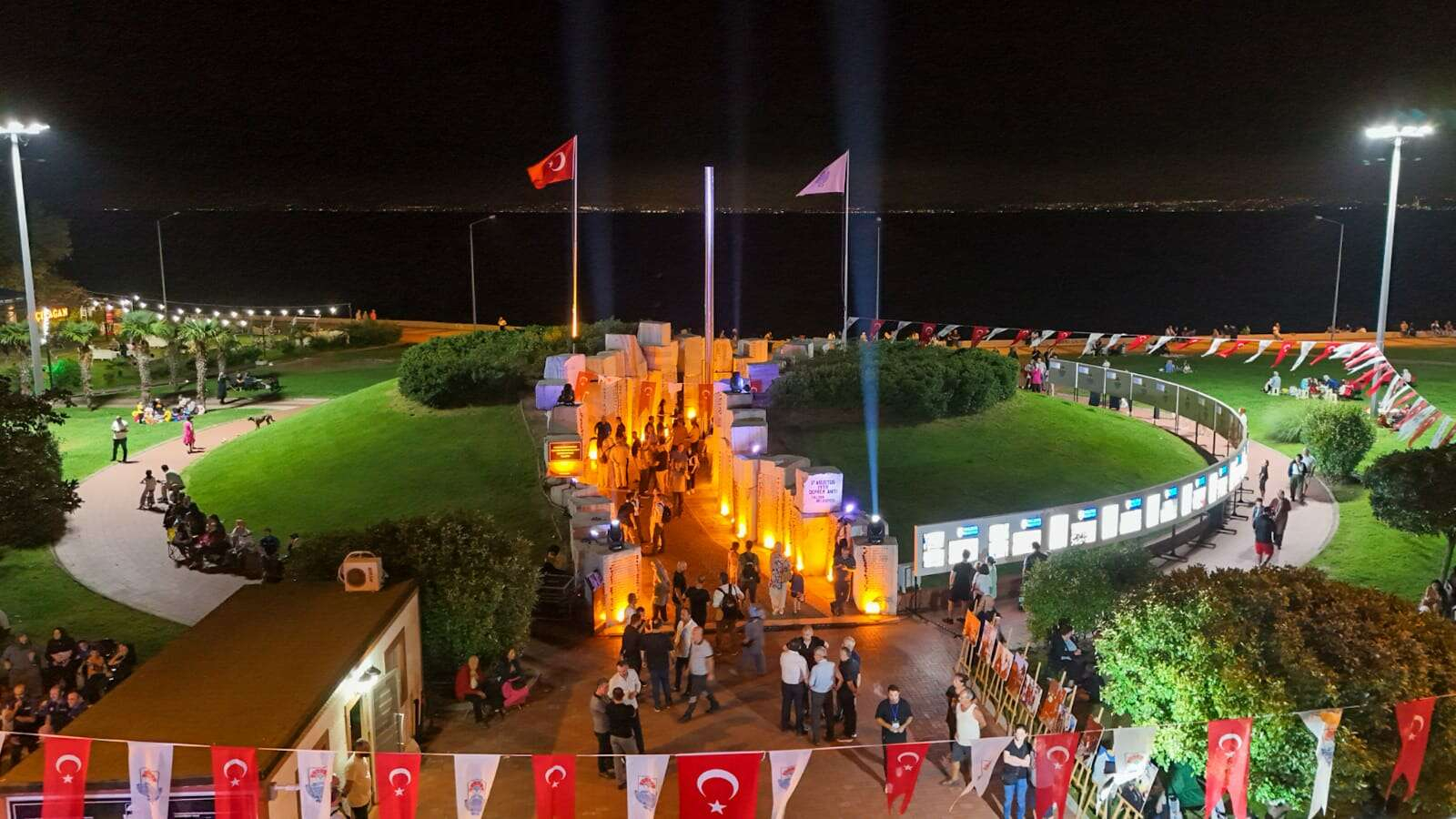 Deprem anıtını ziyarete gelenlere Yalova Belediyesi tarafından hazırlanan deprem videosu gösterimi gerçekleşti. Saatler 23:00'ı gösterdiğinde ise 15 Temmuz Demokrasi ve Cumhuriyet Meydanı’nda toplanan protokol mensupları, sivil toplum kuruluşu temsilcileri ve vatandaşlardan oluşan kalabalık deprem anıtına doğru anma yürüyüşü gerçekleştirdi.