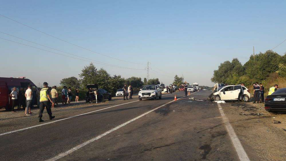Yalova’da hatalı sollama sonucu meydana geldiği iddia edilen kazada iki araç çarpışırken, sürücüsünün kazayı görerek direksiyonu kırdığı cip de takla attı. Kazada 2 kişi hayatını kaybetti, 5 kişi de yaralandı.