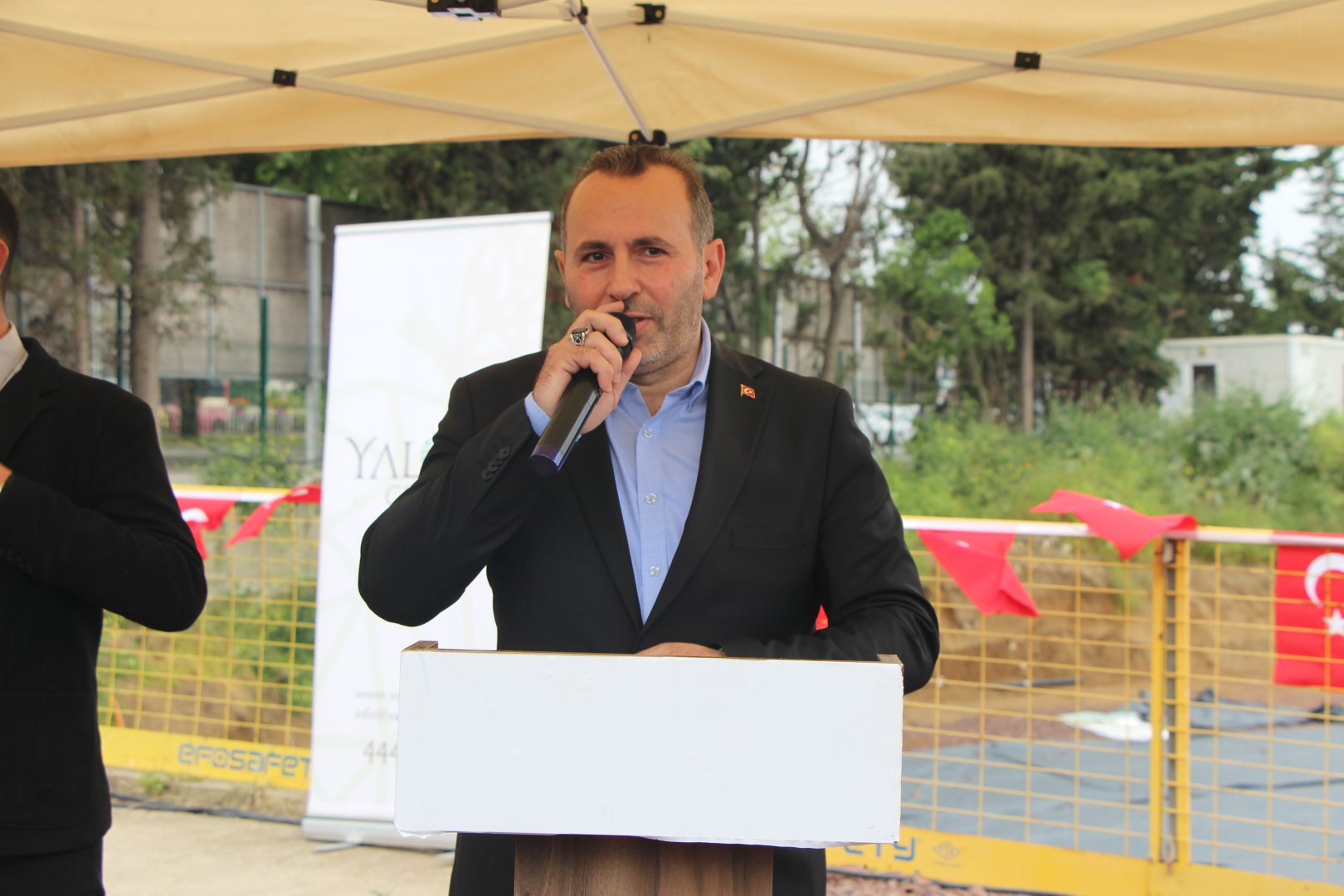 Caminin bağışçısı olan Yalova Grup adına ise Orbay Tuna bir konuşma yaparak böyle bir eseri Yalova’ya kazandıracak olmaktan duyduğu memnuniyeti vurguladı. Ardından söz alan Yalova Belediye Başkanı Mustafa Tutuk ise, “Camimizin inşa fikri ortaya atıldığında, bize, ‘olmaz o arsayı vermeyiz buraya cami yapamazsınız’ dediler. Arsayı aldık, imar uygulamasını yaptık. Sonra, ‘Ruhsat veremezsin’ dediler. Ruhsatını da verdik. Allah nasip ederse de 1 yıl içerisinde camimizi ibadete açıp ilimize güzel bir eser kazandırmış olacağız” diye konuştu.