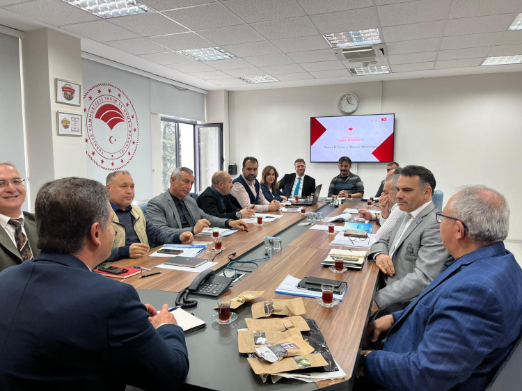 Yalova Tarım ve Orman İl Müdürü Selçuk Yaman başkanlığında düzenlenen toplantıda, 2024 yılı tarımsal üretim faaliyetleri ve projeleri değerlendirildi. Yalova Tarım ve Orman İl Müdürlüğü binasında gerçekleştirilen toplantıya ilçe ve şube müdürleri katıldı.Toplantıda, tarımsal ve hayvansal üretime yönelik yürütülen projeler, destekleme çalışmaları ve elde edilen sonuçlar detaylı bir şekilde ele alındı. Ayrıca, 2025 yılı projeleri ve hedefleri üzerine istişarelerde bulunuldu.