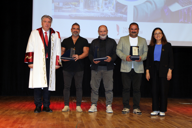 Konuşmanın ardından Mehmet Okul Kongre Salonu’nun Yalova Üniversitesi’ne kazandırılmasını sağlayan Okul ailesinin üyelerini sahneye davet eden Yalova Üniversitesi Rektörü Prof. Dr. Mehmet Bahçekapılı, Yalova Valisi Dr. Hülya Kaya ile birlikte Okul ailesine teşekkür plaketlerini takdim ettiler. Tören, akademik unvan alan personellere cübbe giydirilmesi ile devam etti.