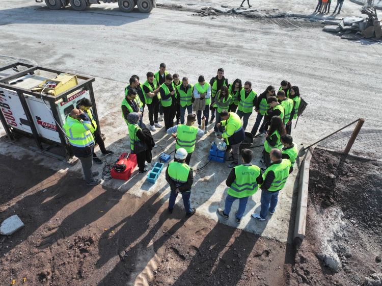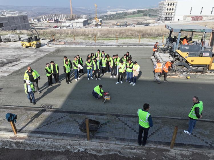 Gerçekleştirilen saha ziyaretinde öğrenciler, devam eden yol yapım süreçlerine ilişkin teknik detaylar hakkında bilgi aldı. Uygulamalı eğitim kapsamında SSB teknolojisinin aşamaları, saha deneyleri ve kalite kontrol testleri yerinde incelendi.