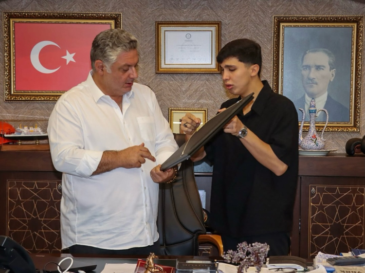 Genç sanatçının emeğini takdir eden Başkan Gürel, anlamlı hediye için teşekkür ederek, “Sanat ve sanatçının her zaman yanında olacağız. Gençlerimizin yetenekleriyle şehrimize değer katması bizi gururlandırıyor. Başarılı bir öğrencilik hayatından sonra sanat çalışmalarında da şimdiden başarılar diliyorum” dedi. Necat Cangir ise sanat yolculuğunda böyle bir desteği ve teşekkürü Başkan Gürel’den almanın kendisi için çok kıymetli olduğunu belirterek, mutluluğunu dile getirdi. Başkan Gürel ve Cangir bir süre sohbet ettikten sonra, çekilen hatıra fotoğrafı ve iyi dilek temennileri ile birlikte ziyaret sona erdi.
