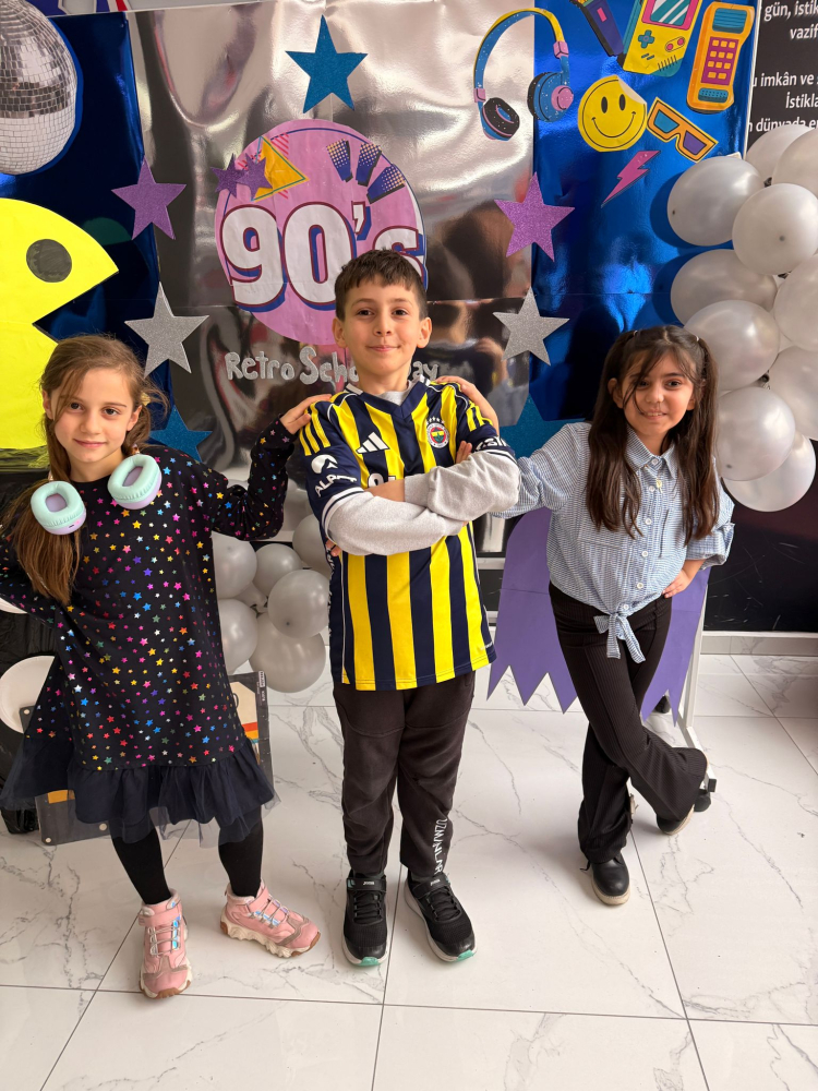 Uzmanlar İlkokulu’nda bu kez ders zili nostalji için çaldı. 90’lar temasıyla düzenlenen özel etkinlikte öğrenciler, geçmişin renkli dünyasında keyifli bir yolculuğa çıktı. Müzik, dans ve kahkahaların hiç susmadığı günde okul bahçesi adeta bir şenlik alanına dönüştü.