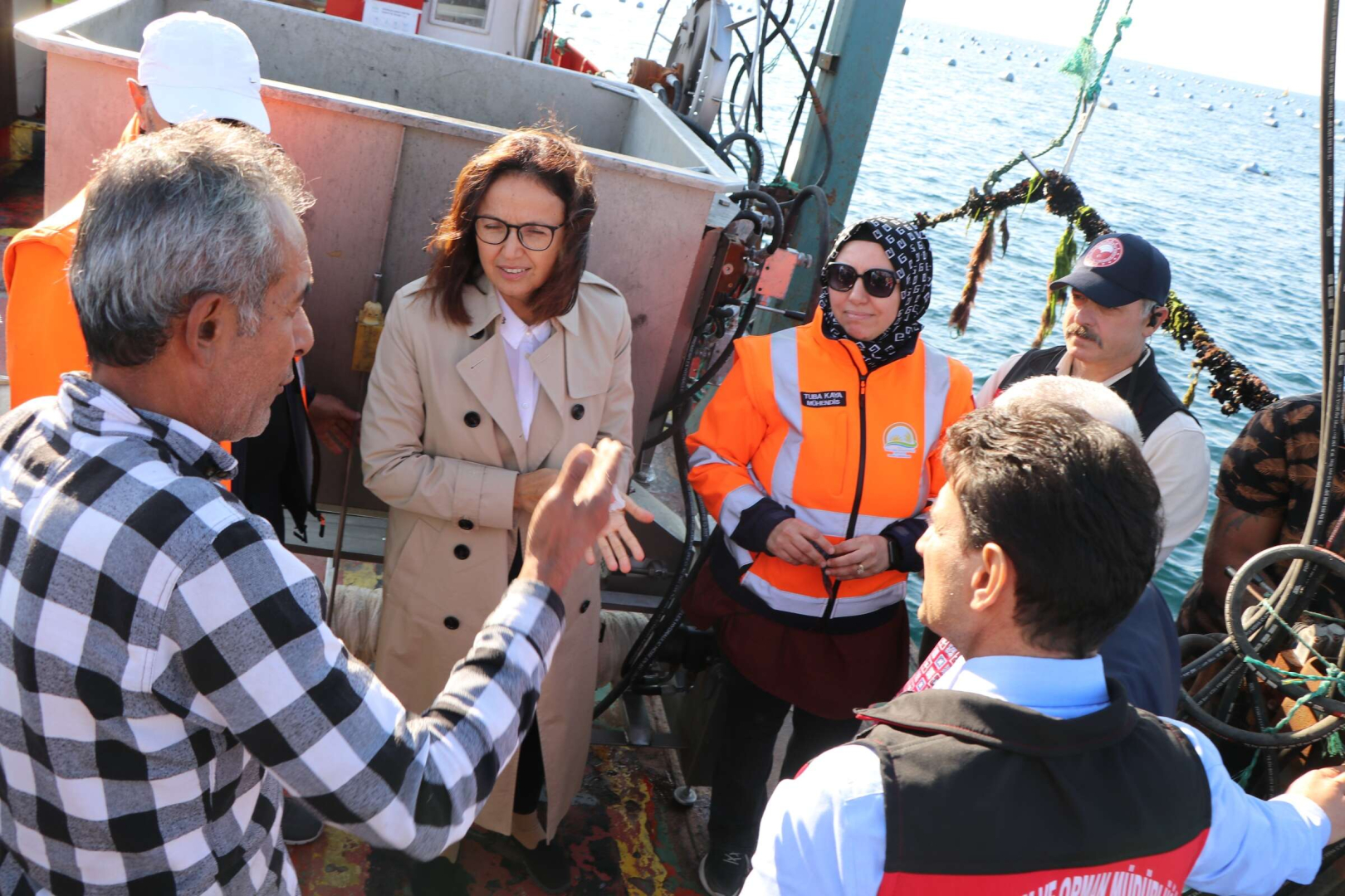 Yalova Valisi Dr. Hülya Kaya, İl Tarım ve Orman Müdürü Suat Parıldar’la beraber Kocadere Köyü açıklarında organik midye çiftliğindeki midye hasadına katıldı