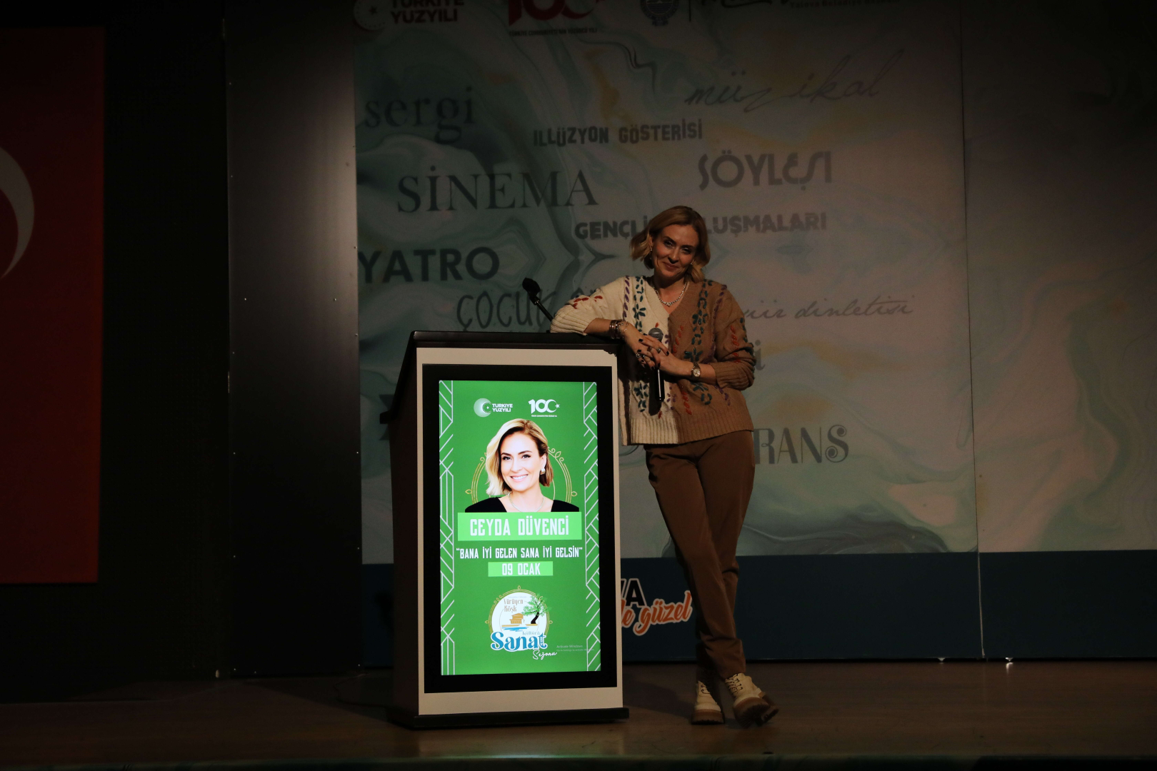 Yalova Belediyesi Yürüyen Köşk Kültür Sanat Sezonu kapsamında Ceyda Düvenci, Yalovalılarla buluştu. Oyuncu, yazar, sunucu ve aynı zamanda televizyon programcısı olan Ceyda Düvenci ‘Bana İyi Gelen Sana İyi Gelsin’ isimli söyleşisiyle Yalovalılara güzel bir gece yaşattı