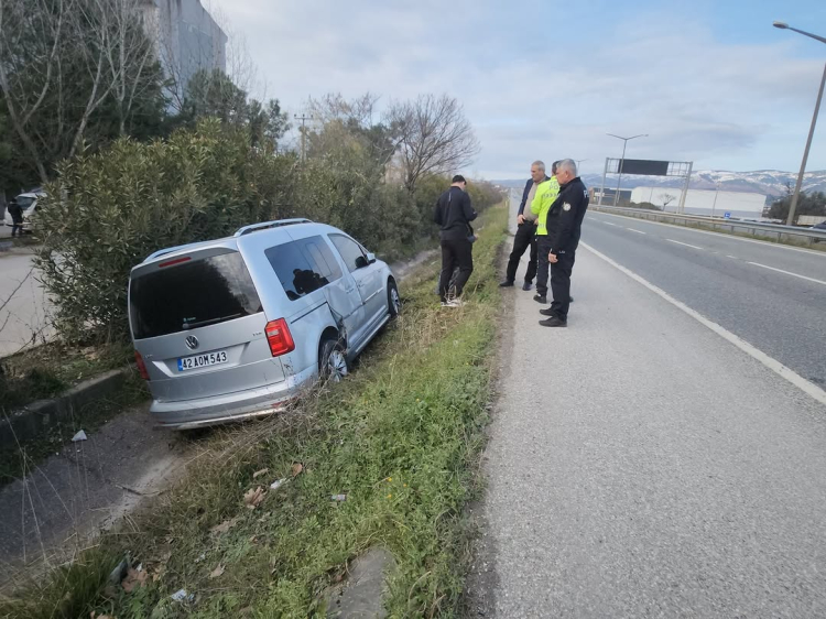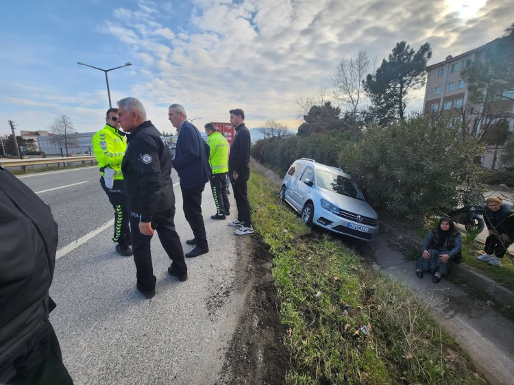 Çarpmanın etkisiyle savrulan içinde 3 kişilik bir ailenin bulunduğu hafif ticari araç, kontrolden çıkarak yol kenarına uçtu ve ağaçlara çarpınca devrilmekten son anda kurtuldu.