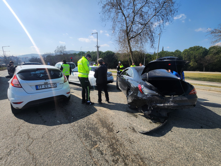 Yalova- Bursa Karayolunda meydana gelen zincirleme trafik kazasında 5 otomobil birbirine girdi. Kazada yaralanan olmazken araçlarda maddi hasar meydana geldi.
