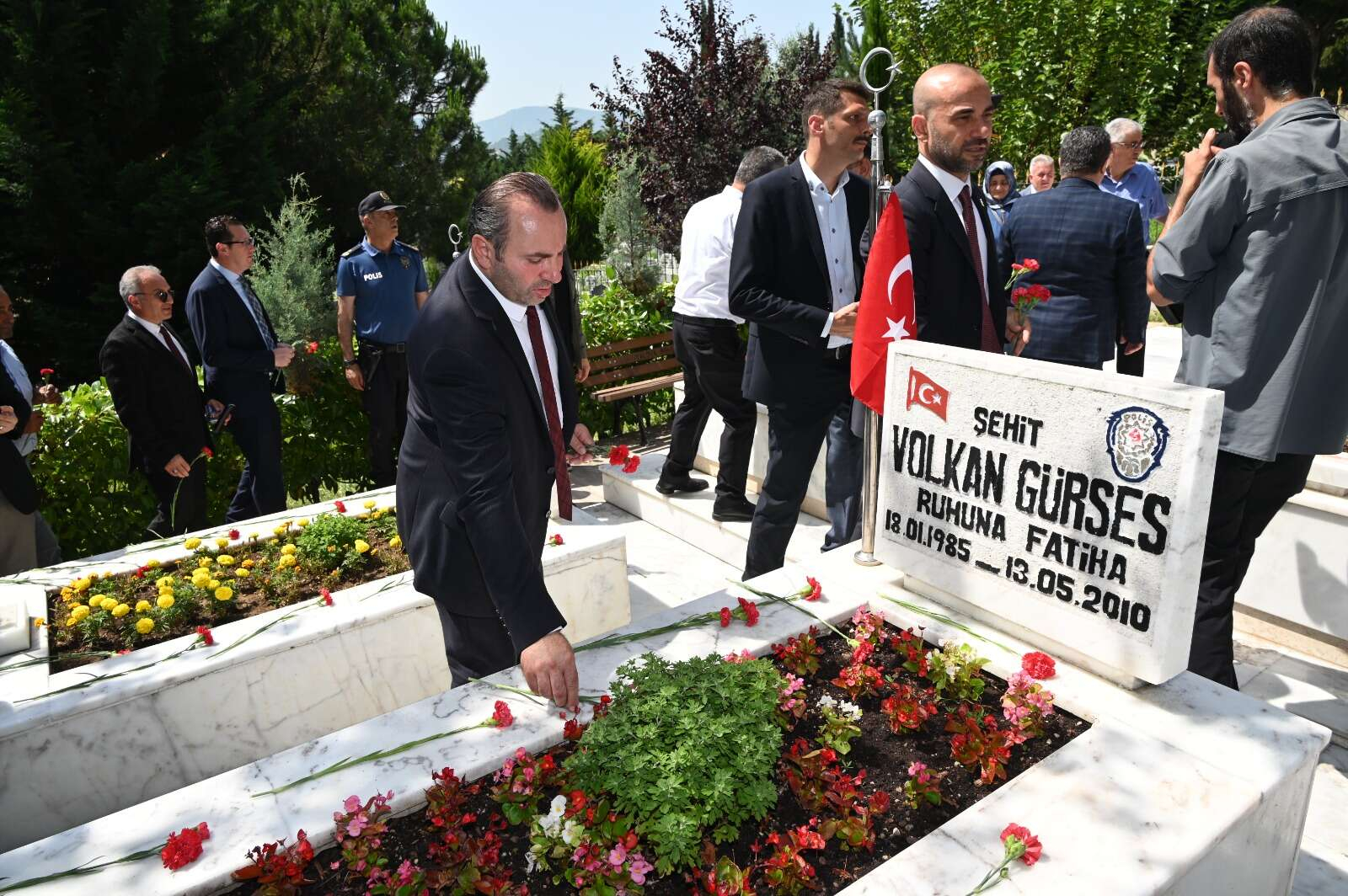 Protokol sonrasında ise Yalova Polis Şehitliği'ne geçti. Burada da şehit polislerin mezarlarına karanfil bırakıldı ve dualar edildi. Şehitlikteki programa Vali Erol’un yanı sıra Yalova Belediye Başkanı Mustafa Tutuk, İl Genel Meclisi Başkanı Hasan Soygüzel, AK Parti İl Başkanı Umut Güçlü, kurum müdürleri ve vatandaşlar katıldı.