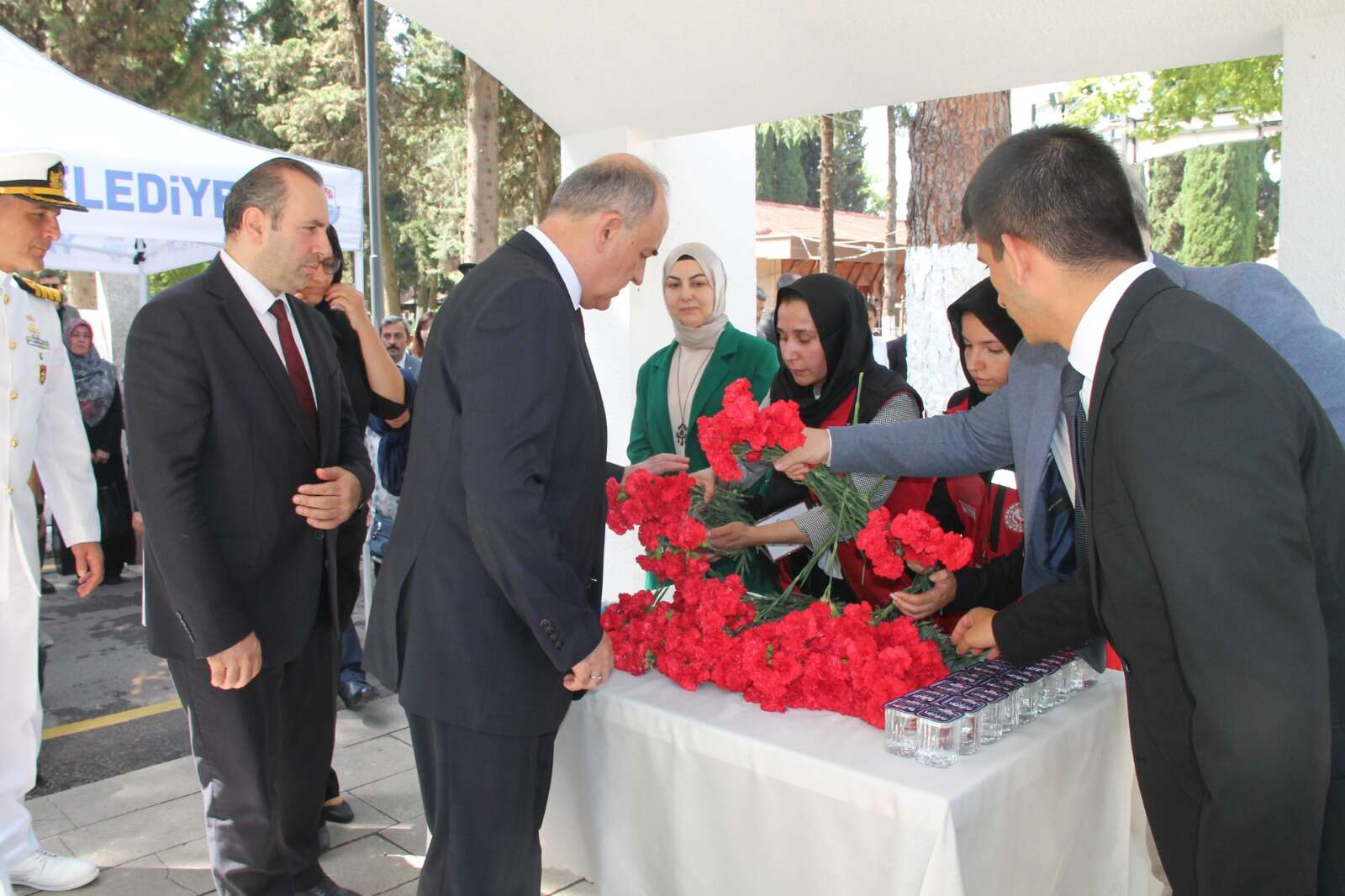 Yalova Valisi Muammer Erol ve beraberindeki heyet önce Yalova Askeri Şehitliğini ziyaret etti. Saygı duruşunda bulunulması ve İstiklal Marşı'nın okunmasının ardından protokol üyeleri mezarlara karanfil bırakıp şehit kabirleri başında dualar okudu.
