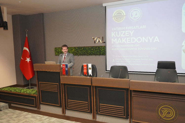 Kuzey Makedonya’nın Ankara Büyükelçisi Jovan Manasijevski, Yalova Ticaret ve Sanayi Odası’nda düzenlenen yatırım toplantısında Türk iş insanlarını Makedonya’ya davet etti.