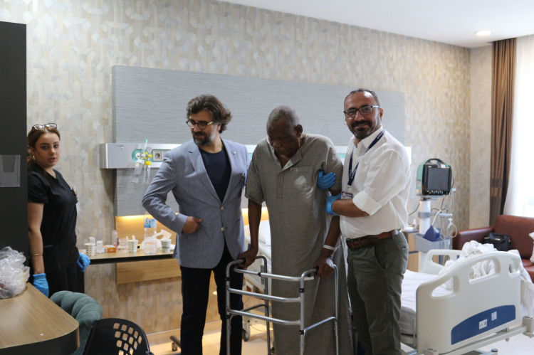 Nijerya’dan Türkiye’ye tedavi için gelen 73 yaşındaki Maman Moustapha, Yalova Atakent Hastanesi’nde gerçekleştirilen zorlu ameliyat sonrası yıllar sonra yeniden yürümeye başladı.