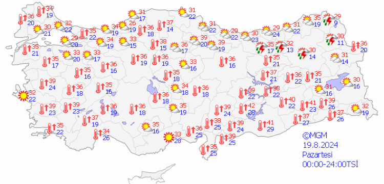 Yapılan açıklamaya göre yurdun güney kesimlerinde mevsim normalleri üzerinde, diğer kesimlerde mevsim normalleri civarında seyreden hava sıcaklıklarının pazartesi gününden itibaren kuzey, iç ve doğu kesimlerde ciddi seviyede artacağı tahmin ediliyor.