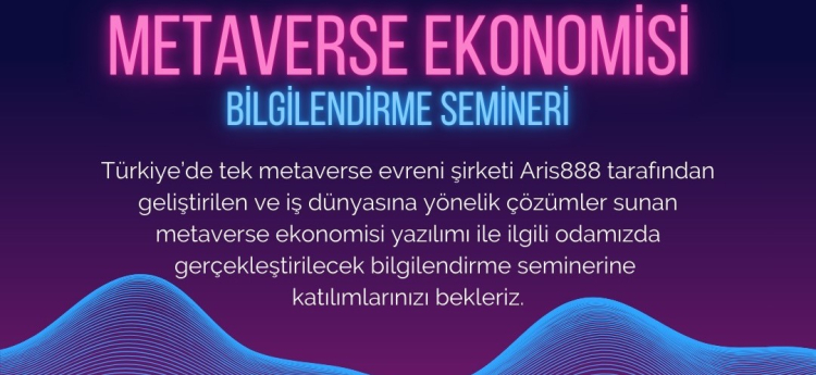 Türkiye’de tek metaverse evreni şirketi Aris888 tarafından geliştirilen ve iş dünyasına yönelik çözümler sunan metaverse ekonomisi yazılımı ile ilgili Yalova Ticaret ve Sanayi Odası’nda (YTSO) seminer gerçekleştirilecek.