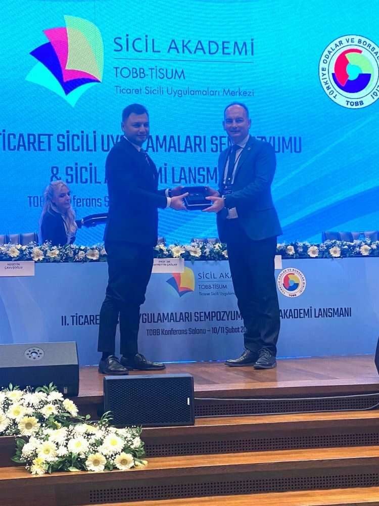 Yalova Ticaret Sicili Müdürlüğümüz Sicil Akademi alt çalışma gruplarında aldığı görevlerden dolayı Ticaret Bakanlığı ve Türkiye Odalar ve Borsalar Birliği (TOBB) tarafından plaketle taltif edilmiş, ayrıca Sempozyumda konuşmacı olarak yer Ticaret Sicili Müdürümüz İbrahim Akkanat plaketle taltif edilmiştir.
