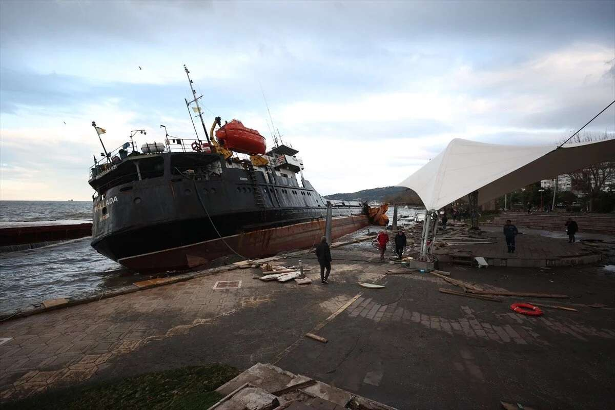 Zonguldak’ta yaşanan fırtına nedeniyle bir gemi kıyıya vurarak battı. Batan gemide 12 Türk mürettebat olduğu biliniyor.