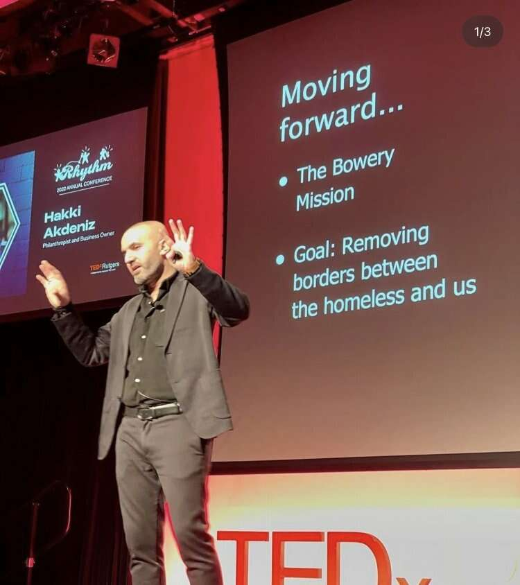 İş hayatındaki başarılarının yanı sıra hayırsever kişiliği ile de öne çıkan Hakkı Akdeniz 2012 yılında Amerika’da yaşanan Sandy kasırgası döneminde vatandaşlara fahiş fiyatlı satış yapan yerel esnafların aksine 3 dükkanını halka açmış ve New York sakinlerine uzun süre bedava içecek, yiyecek ve pizza dağıtmıştır. Bununla da kalmamış Manhattan’da evsiz vatandaşlar için yardım ağı oluşturmuş, sokakta yaşayan evsiz insanların saçlarını kesmesi için bir berber, ayrıca banyo yapmaları içinde bir spor salonu ayarlamıştır.
