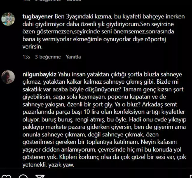 O kadar imkânın içinde bu kıyafetle sahneye çıkmak… Her şeyi geçtim özensizlik, oraya gelenlere saygısızlık…