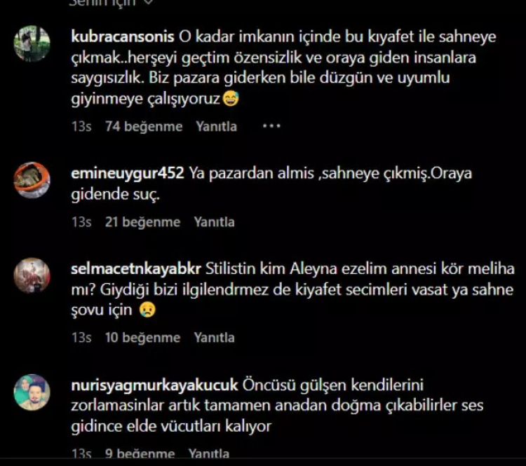 Aleyna Tilki'nin son konserinde tercih ettiği sıradan şort bluz kombinini görenler kendini tutamadı. Kıyafet eleştirilerine tahammülü olmayan Aleyna Tilki ağır eleştiri oklarının hedefi olmayı başardı.