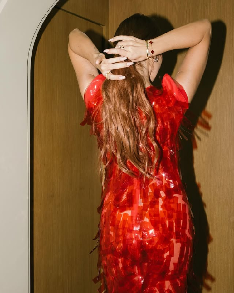 Saçları için bir günlüğüne Belçika'ya gidip gelen Hadise, son olarak ilginç kırmızı pullu elbisesiyle poz verdi. ünlü şarkıcının elbisesi sosyal medyayı ikiye böldü.