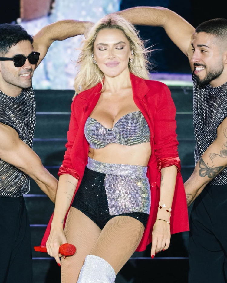 Venedik'ten Kerem Bürsin ile samimi paylaşımlar yapmasının ardından sahneye çıkan ünlü şarkıcı, ışıl ışıl parlayan mini şort ve sutyen kombiniyle sevenlerinin karşısına çıktı.
