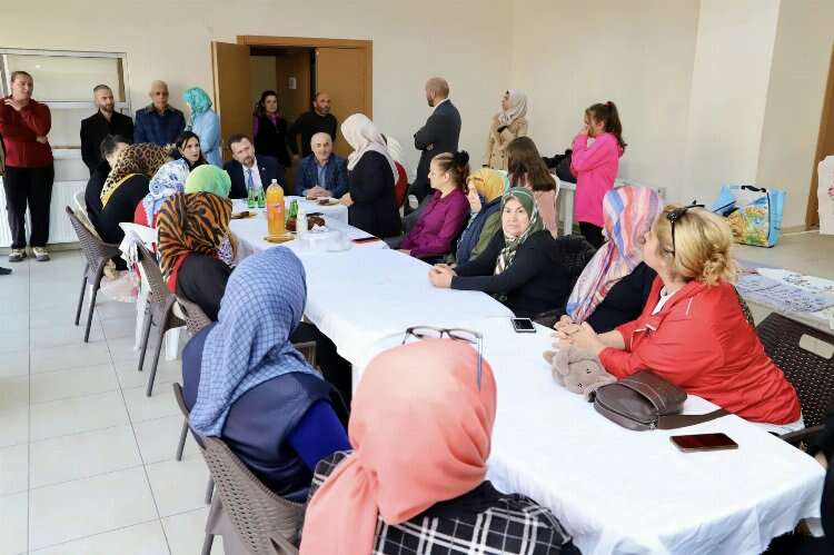 Jimnastik, masa tenisi, dart, karate, güreş, yoga, bağlama, gitar, keman, robotik kodlama hat sanatı, dikiş ve daha birçok kurs ile Çiftlikköy sakinlerine hizmet eden 500 Evler Kültür Merkezinin dikiş eğitimi alan kursiyerleriyle bir araya gelen Hacı, kadınların dilek ve temennilerini dinledi.