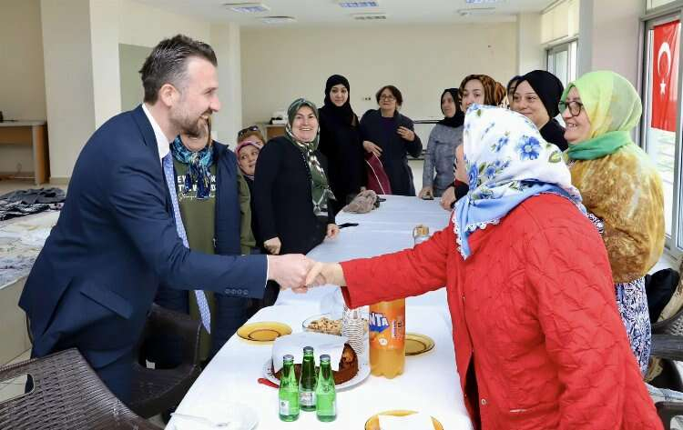 AK Parti Çiftlikköy Belediye Başkan Adayı Dr. Recep Hacı, 500 Evler Kültür Merkezindeki kadın kursiyerleri ziyaret etti.
