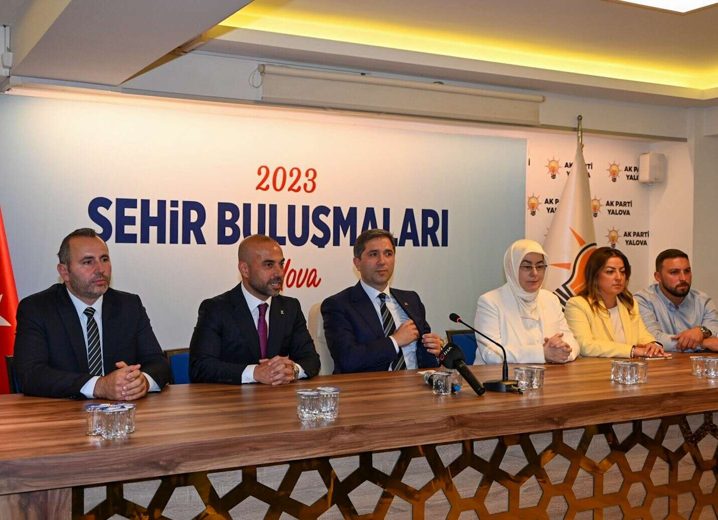 AK Parti Genel Başkan Yardımcısı Dış İlişkiler Başkanı İstanbul Milletvekili Zafer Sırakaya sonrasında basın mensuplarına açıklamalarda bulundu. Öncesinde AK Parti Yalova İl Başkanı Umut Güçlü, Yalova Belediye Başkanı Mustafa Tutuk, Yalova Milletvekili Meliha Akyol kısa birer selamlama konuşması gerçekleştirdiler. Burada Yalova’nın gelişiminden övgü ile bahseden Sarıkaya, “Şehir Buluşmaları kapsamında Yalova’dayız. AK Parti olarak geçmiş dönemde olduğu gibi yeniden ülkemizin her bir noktasını ziyaret ederek 81 ilimizin tamamında bulunarak teşkilatlarımızla ve o şehirlerimdeki insanlarımızla hemhal olma gayreti içerisindeyiz. AK Parti kurulduğu günden itibaren milletine hizmetkâr olma anlayışını benimsemiş ve siyasetini de buna göre şekillendirmiş olan bir siyasi partidir. Bu anlamda hiçbir zaman vatandaşlarımızla ve milletimizle olan bağımızı zayıflatmadan, her zaman Sayın Cumhurbaşkanımızın da ifade ettiği gibi millete hizmetkar olmaya geldik anlayışının tezahürü olarak bugün de Yalova’da bulunuyoruz. Bursa’daki öğrencilik dönemimde de Yalova’ya sıkça geliyordum. Ama Yalova’yı tekrar tanıyabilmek çok da kolay olmadı. Çünkü Yalova 1995 yılında il olduktan sonra 2008 yılı itibarı ile de Yalova Üniversitesi’nin kurulmasından sonra, AR-GE, üretim ve istihdam oluşturulması anlamında, aynı zamanda da turizm anlamında çok gelişti. Dolayısıyla bu gelişmişliğin önümüzdeki süreçte daha da artacağına olan inancımı da ifade etmek istiyorum” dedi.