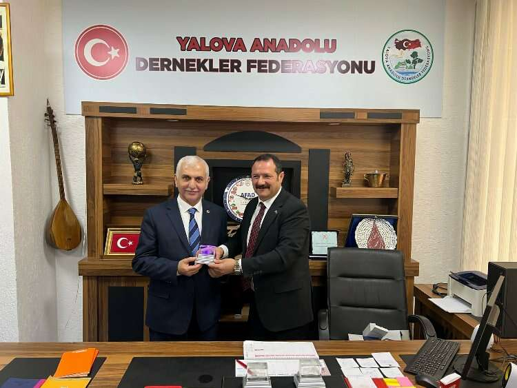 Derneğin faaliyetleri hakkında görüş alışverişinde bulunulan ziyarette Babaoğlu, Mervan Gül, Caner Özturan ve Ekrem Olgaç’a Yalova’nın simgesi olan Yürüyen Köşk maketi hediye etti.
