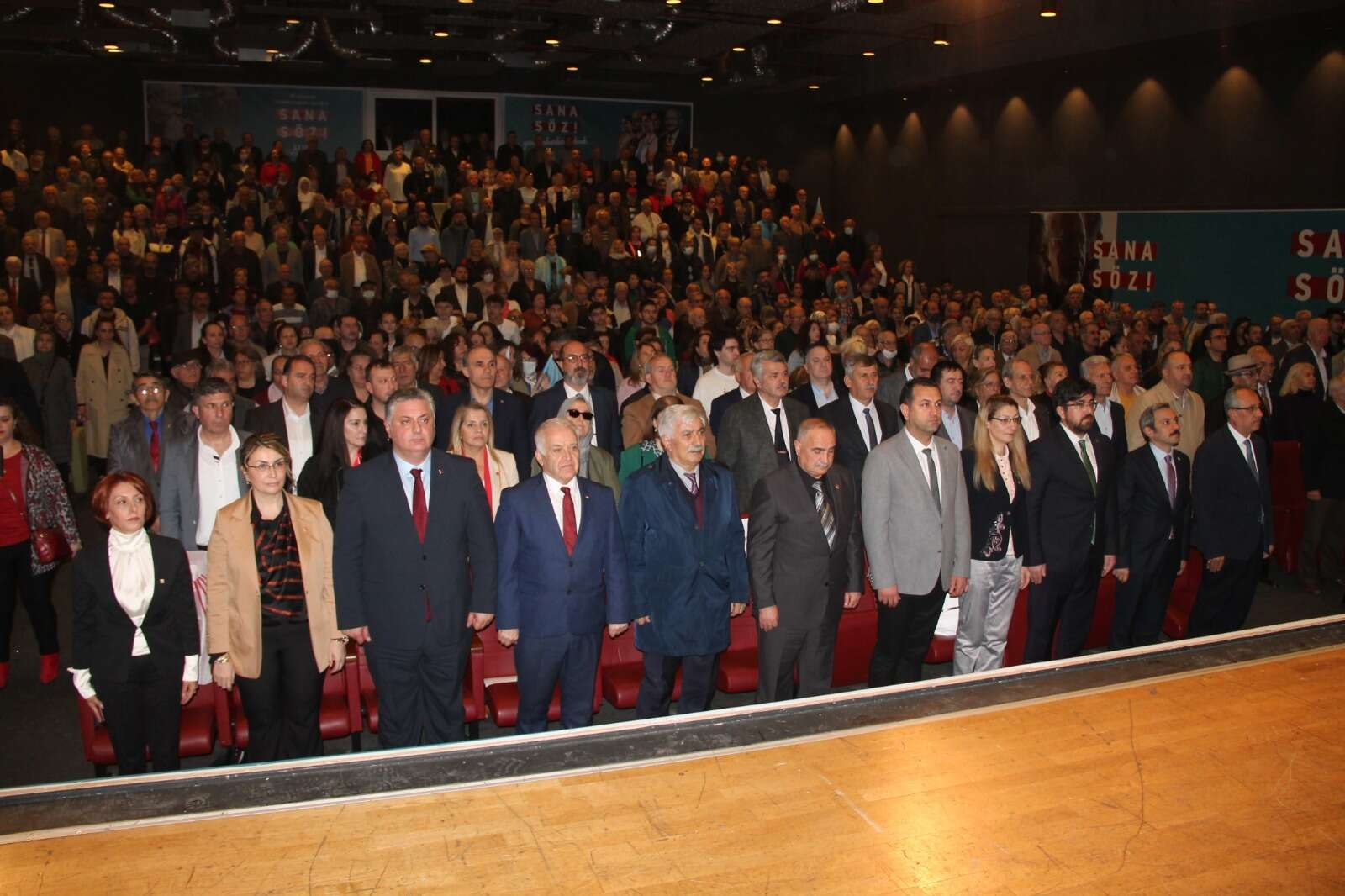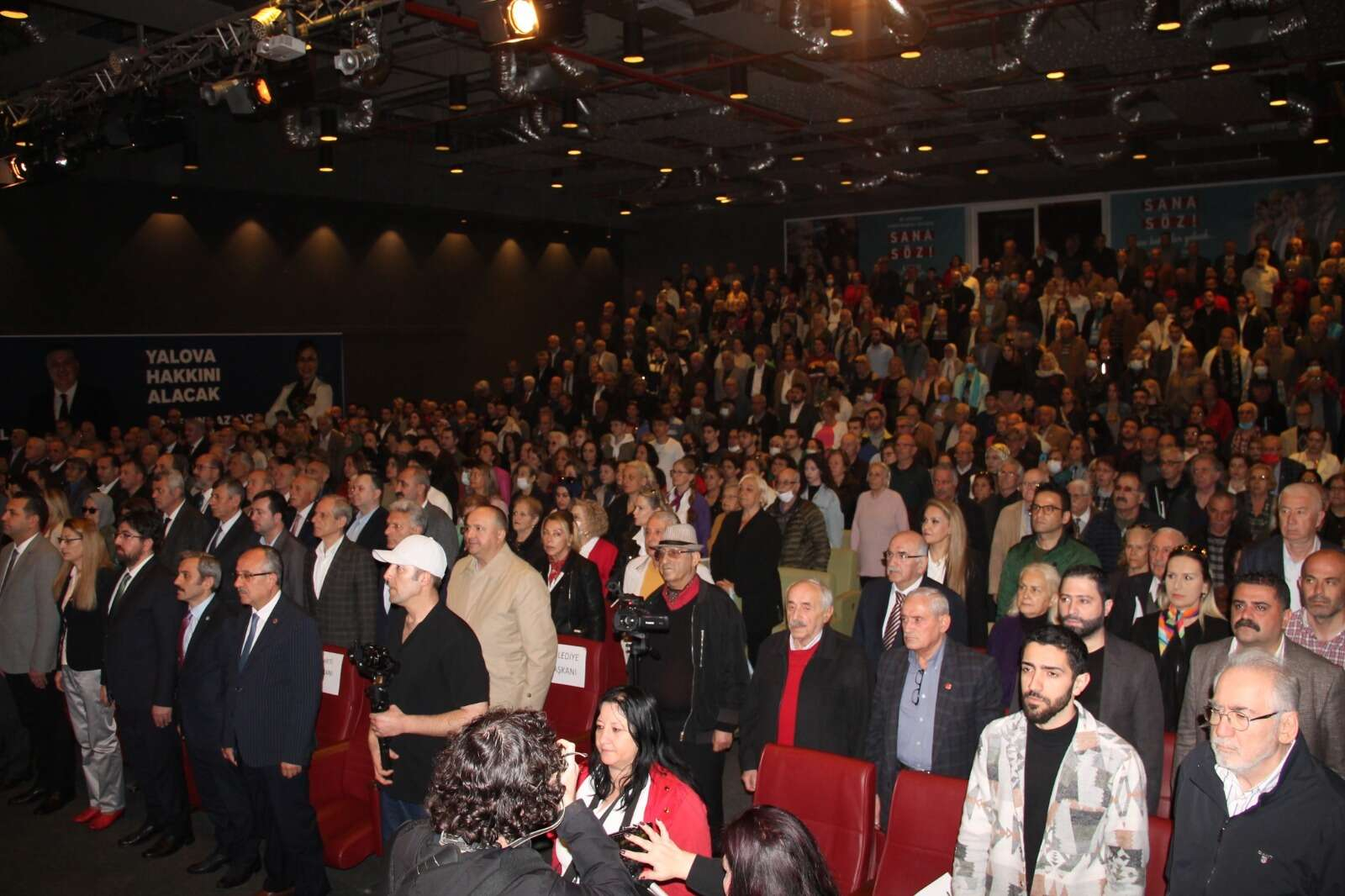 Konuşmaların ardından toplantıya katılan Millet İttifakı'nı oluşturan partilerin il başkanları ile birlikte sahneye çıkan CHP Yalova Milletvekili adayları salonu dolduran partilileri selamladı. Programda partiye katılan vatandaşlara da rozetleri CHP Yalova Milletvekili adayları tarafından takıldı.