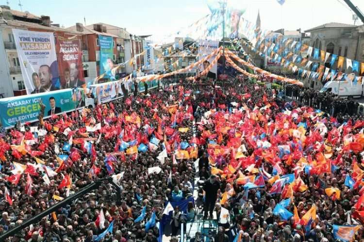 Ülkemizi dünyanın en büyük 10 ekonomisinden biri haline getireceğiz. Türkiye'yi 2 kat daha büyüteceğiz. Sadece belediye başkanları seçmekle kalmayacaksınız, diğer mücadelelerimizde de işimizi kolaylaştıracaksınız. Aksaray'la birlikte Türkiye haritasının tamamını Cumhur İttifakı'nın renkleriyle boyamaya var mısınız? Bayram gelmeden 31 Mart'ta milli irade bayramını birlikte kutlayacağımıza inanıyorum.