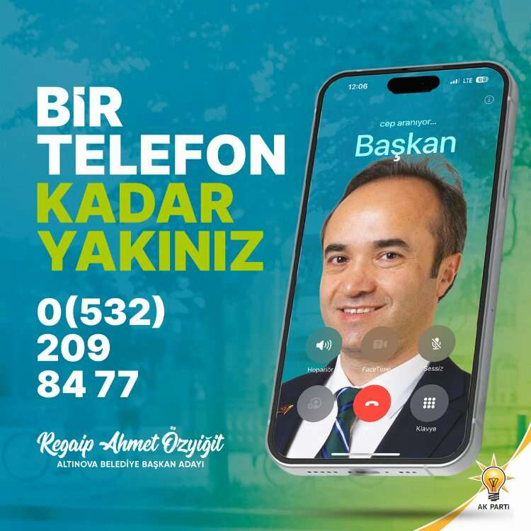 AK Parti Altınova Belediye Başkan adayı Regaip Ahmet Özyiğit şeffaf siyaset ilkesine uygun olarak telefon numarasını herkesle paylaştı. Vatandaşla arasındaki tüm engelleri kaldırmak istediğini ifade eden Özyiğit, “Bana bir telefon kadar yakınsınız” sözlerini kullandı.