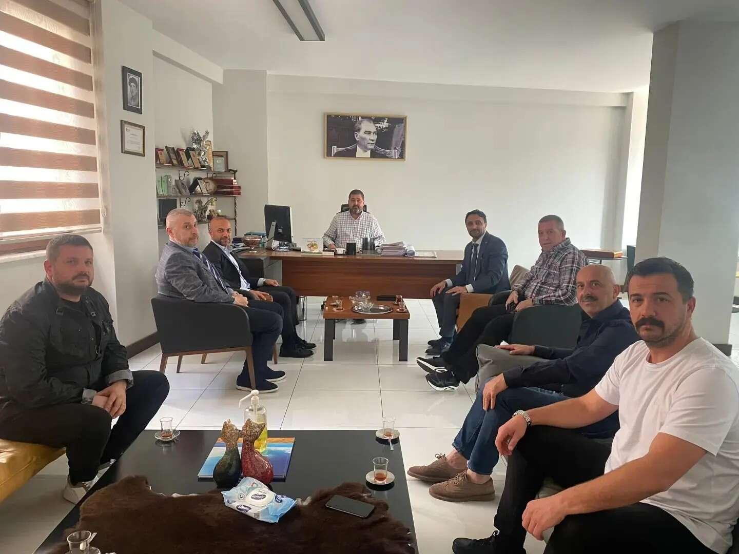 Yalova AK Parti İl Başkanı Umut Güçlü, İl Yöneticileri ve İl Genel Meclis Üyesi Furkan Ateş ile birlikte Başkanlar Deri Merkez Et Ürünleri işletmecileri İlhan ve İlhami Başkan’ı ziyaret ettiler. Ziyaret sırasında çeşitli konular hakkında sohbet ettiler.