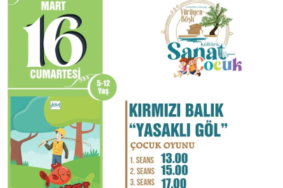 16 Mart Cumartesi günü Yalova Belediyesi Çocuk Tiyatrosu’nda ‘Kırmızı Balık Yasaklı Göl’ isimli tiyatro oyunu ücretsiz olarak 13:00, 15:00 ve 17:00 saatlerinde çocuklar için sahnelenecek. 5-12 yaş çocuklara hitap edecek olan tiyatro oyununa https://etkinlik.yalova.bel.tr/etkinlikler/kirmizi-balik-yasakli-gol/123 adresinden kayıt yaptırılarak girilebileceği belirtildi.