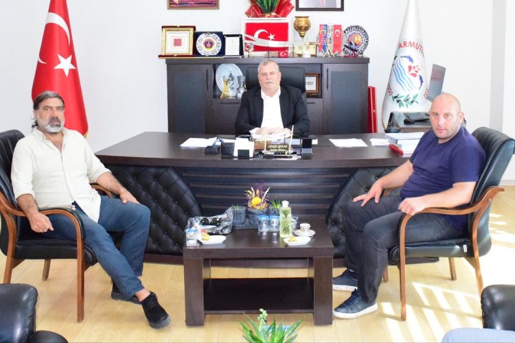Yalovaspor Başkanı Ali Yavru ve Sportif Direktör Faruk Yiğit, Armutlu Belediye Başkanı Cengiz Arslan’ı makamında ziyaret etti. Başkan Cengiz Arslan ile belediye meclis üyeleri burada 50 adet forma satın alarak kulübe desteklerini gösterdi.