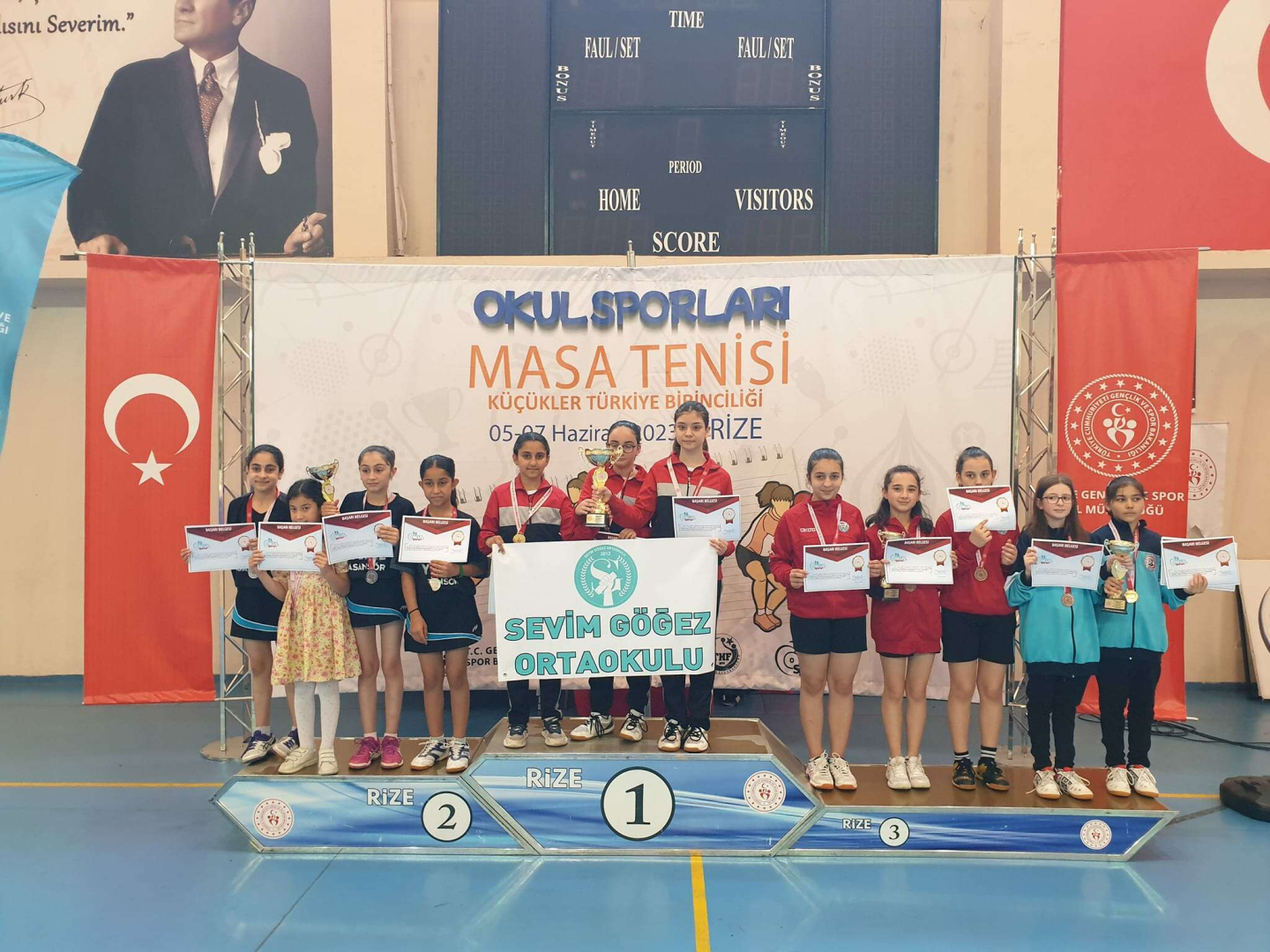 MEB Masa Tenisi Küçükler Türkiye Şampiyonası Rize’de düzenlendi. Şampiyonaya 81 ilden 300’e yakın sporcu katıldı. Yalova Sevim Göğez Ortaokulu Masa Tenisi Takımı, grup maçlarını namağlup geçerek yarı finale yükseldi. Yarı finalde Konya’dan Özel Çınar Koleji’ni 3-0 yenen takım, finalde ise Ankara’dan Özel Başkent Koleji’ni 3-1 mağlup ederek şampiyonluğu elde etti.