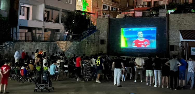 A Milli Futbol Takımı'nın EURO 2024'te Avusturya ile oynadığı maçın heyecanı Termal ilçesinde meydana kurulan dev ekranda yaşandı. Yüzlerce kişinin dev ekranda takip ettiği karşılaşmayı 2-1 kazanan ay-yıldızlıların çeyrek finale yükselmesi coşkuyla kutlandı.