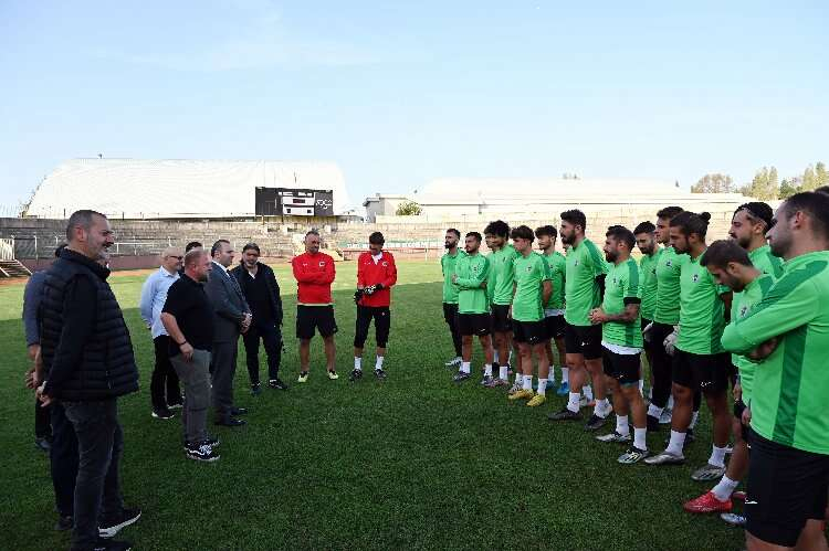 Yalovaspor Kulübü Başkanı İsmail Kaya ve teknik ekiple antrenman sahasına inen Başkan Tutuk, futbolcuları tebrik etti. “Belediye ile ortak konsensüs sağlandı ve Yalovaspor Kulübü ile Yalova Belediyesi güçlerini birleştirdi” diyen Başkan Tutuk, “Belediyemizin destekleriyle, yönetimimizin gayretleriyle, teknik ekibimiz ve bu futbolcularımızın özverileriyle bunu başaracağız. Hedefimiz belli ve her ziyaretimde sizlere de bunu söylüyorum