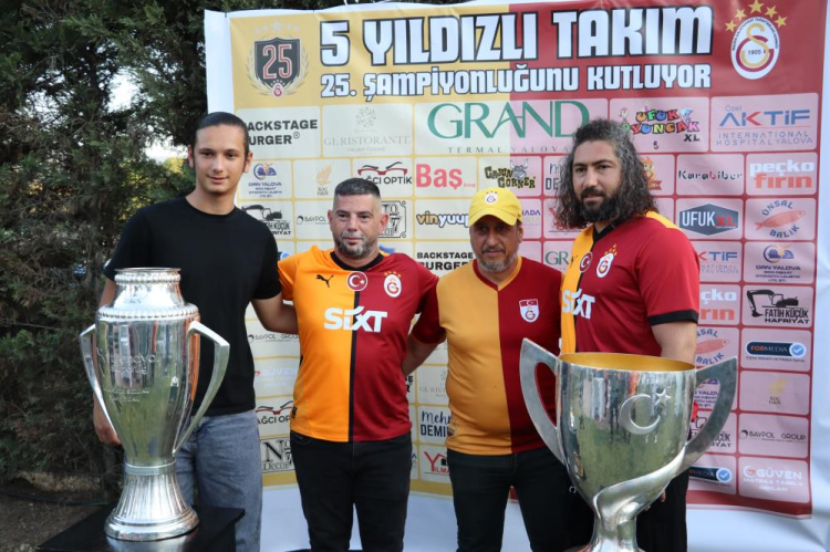 Yalova Galatasaray Taraftarları Derneği, Sarı-Kırmızılı taraftarları buluşturan bir organizasyona ev sahipliği yaptı. Bir restoranda gerçekleşen organizasyon, saat 19.05’te saygı duruşu ve İstiklal Marşı’nın okunmasıyla başladı. Galatasaray’ın 2024-2025 sezonunda kazandığı Süper Lig Kupası ve Ziraat Türkiye Kupası sergilendi. Taraftarlar, şampiyonluk kupalarıyla bol bol hatıra fotoğrafı çektirdi.