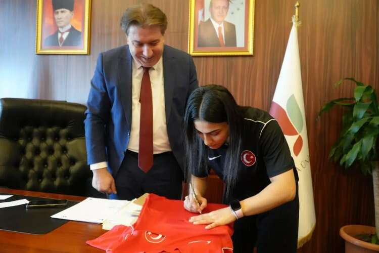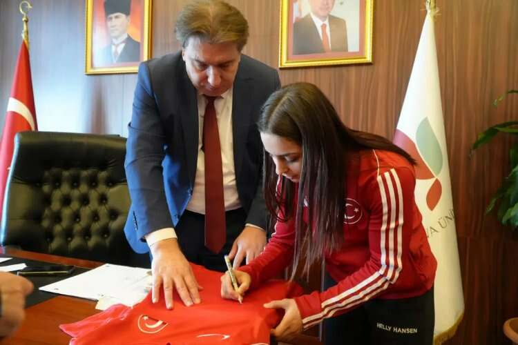 Başarılı sporcular da Prof. Dr. Bahçekapılı’ya hatıra olarak imzalı forma hediye etti.