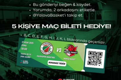 Türkiye Sigorta Basketbol Süper Ligi’nde şehrimizi temsil eden Yalovaspor Basketbol, çekilişle 5 kişiye Manisa Basket maçında geçerli olacak "Numarasız Tribün" maç bileti hediye edecek.