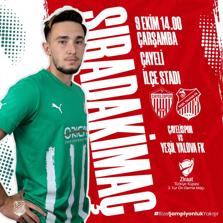 Ziraat Türkiye Kupası’nda Yalova’yı temsil eden Yeşil Yalova FK, 1.tur mücadelelerinde iç sahada Çan Spor’a karşı aldığı 3-0’lık galibiyetle taraftarlarını sevindirmişti ve bir üst tura çıkmaya hak kazanmıştı. Yalova temsilcileri bu kez 2.tur mücadelesinde deplasmanda Çayelispor ile mücadele edecek.