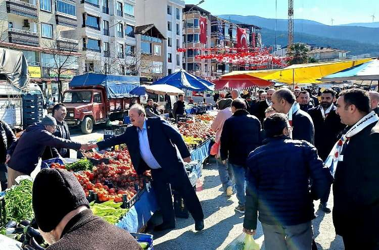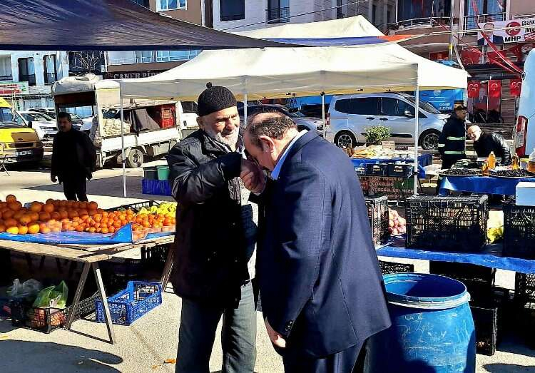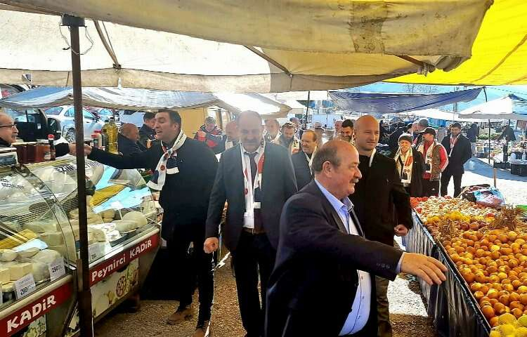 Vatandaşlarımız ve pazar esnafı ile sohbet ederek, önümüzdeki yerel seçimler hakkında karşılıklı bilgi alışverişinde bulunduk.” açıklamasında bulundu.