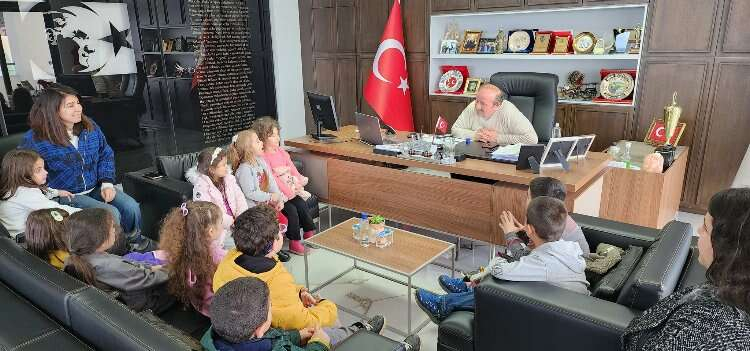 Esenköy Adnan Kaptan İlkokulu anasınıfı öğrencileri, Esenköy Belediye Başkanı Mehmet Temel’i ziyaret etti.