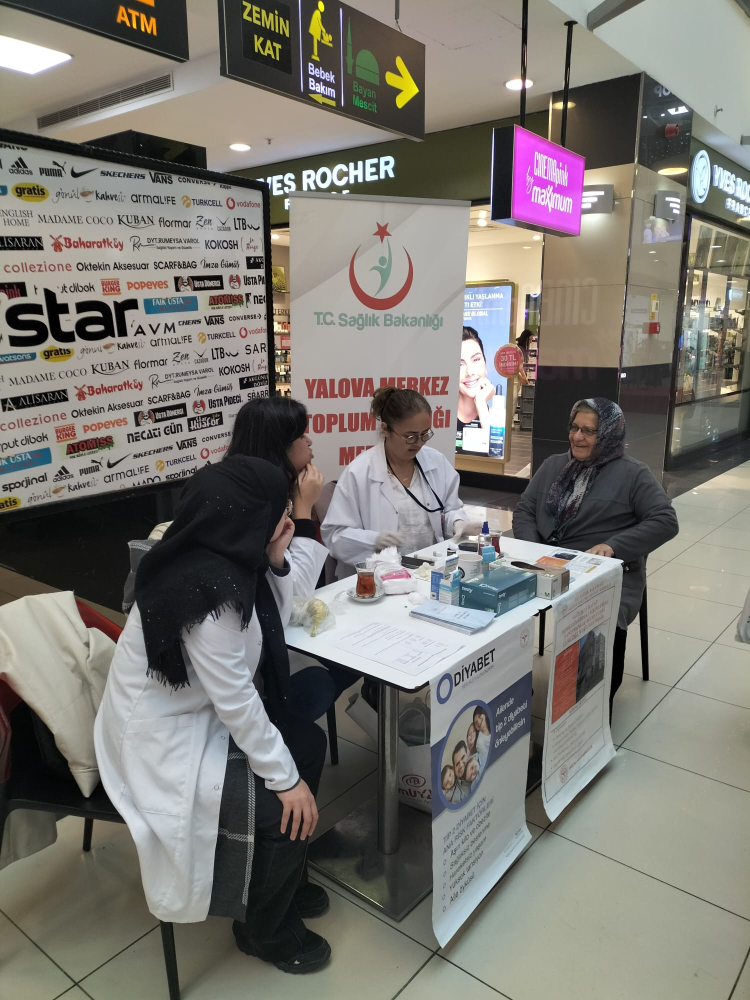 Yalova İl Sağlık Müdürlüğü Merkez Toplum Sağlığı Merkezince Star AVM'de, kurulan stantta vatandaşlar şeker ölçümü yapıldı, diyabet hastalığı ve beslenmesi hakkında bilgi verildi.