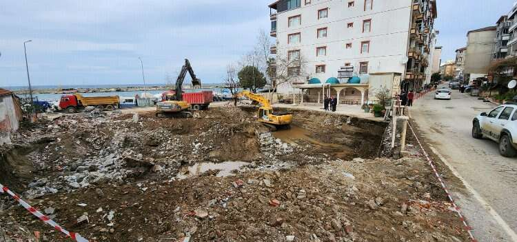 Başkan Temel, belediye birim amirleri ve belediye personelleriyle birlikte yapımı hızla devam eden Merkez Cami temel açma çalışmalarını yerinde inceledi.
