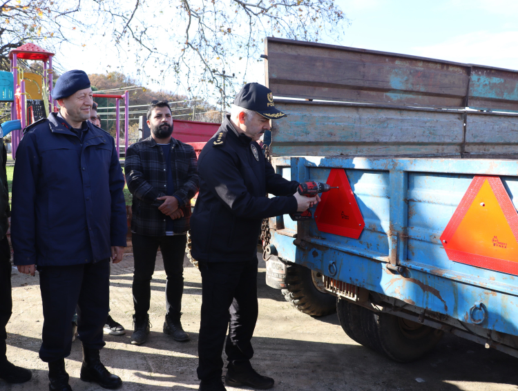 İl Jandarma Komutanlığınca yürütülen ve traktörlerin neden olabileceği trafik kazalarını önlemek amacıyla düzenlenen “Reflektör Tak Görünür Ol” Projesi kapsamında Yalova’daki 25 traktör römorkuna reflektör takıldı.
