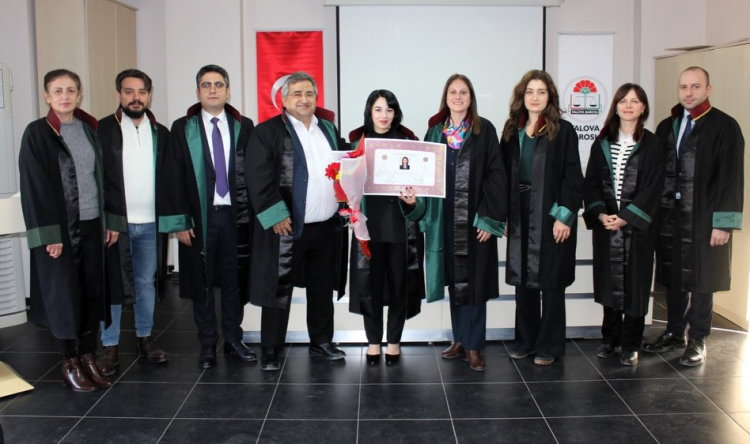Yeni avukatların ruhsatnameleri, Yalova Barosu Başkanı Av. Elif Turnacı Çavuş tarafından takdim edildi.