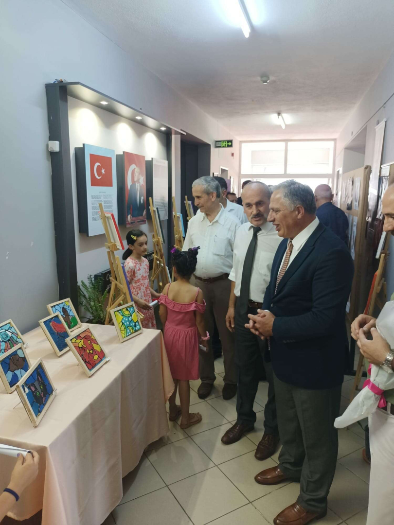 Termal Belediye Başkanı H. Sinan Acar, Termal Halk Eğitim İlçe Müdürlüğü tarafından düzenlenen yıl sonu resim sergisinin açılışını yaparak sergiyi gezdi.