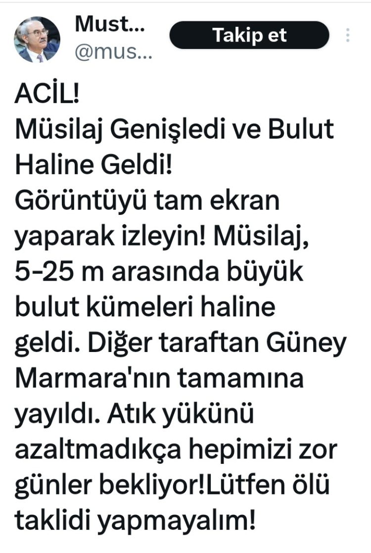 “ACİL! Müsilaj genişledi ve bulut haline geldi!”